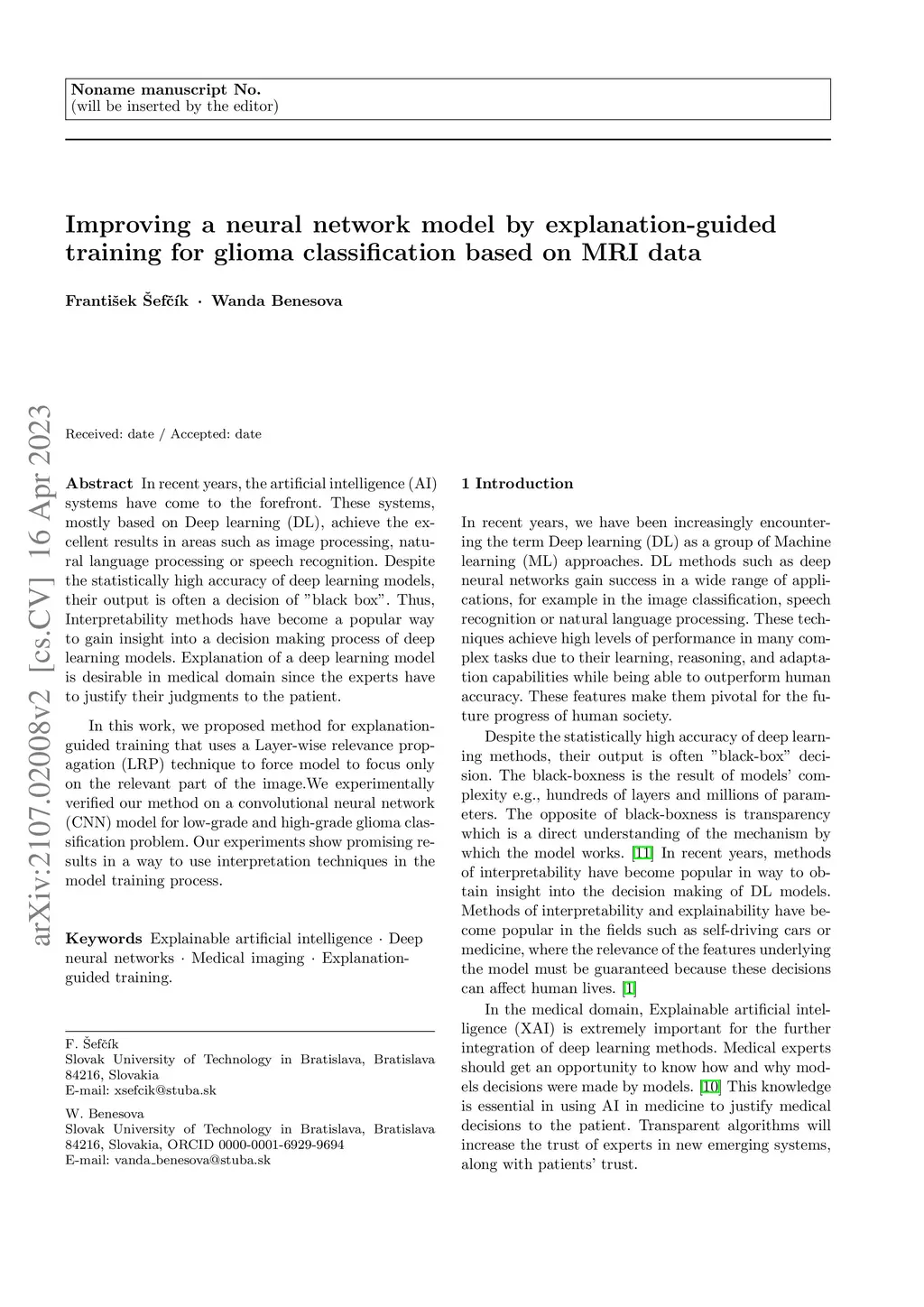 In recent years, artificial intelligence (AI) systems have come to the forefront. These systems, mostly based on Deep learning (DL), achieve excellent results in areas such as image processing, natural language processing, or speech recognition. Despite the statistically high accuracy of deep learning models, their output is often a decision of "black box". Thus, Interpretability methods have become a popular way to gain insight into the decision-making process of deep learning models. Explanation of a deep learning model is desirable in the medical domain since the experts have to justify their judgments to the patient. In this work, we proposed a method for explanation-guided training that uses a Layer-wise relevance propagation (LRP) technique to force the model to focus only on the relevant part of the image. We experimentally verified our method on a convolutional neural network (CNN) model for low-grade and high-grade glioma classification problems. Our experiments show promising results in a way to use interpretation techniques in the model training process.