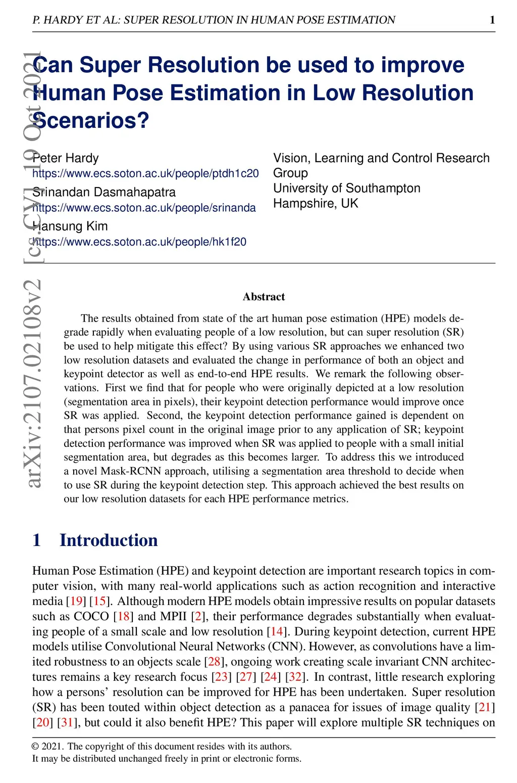 Can Super Resolution be used to improve Human Pose Estimation in Low