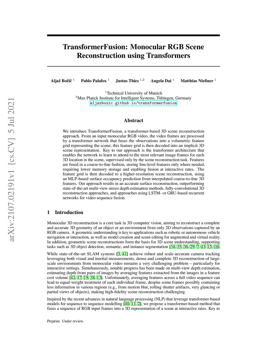 TransformerFusion: Monocular RGB Scene Reconstruction using Transformers