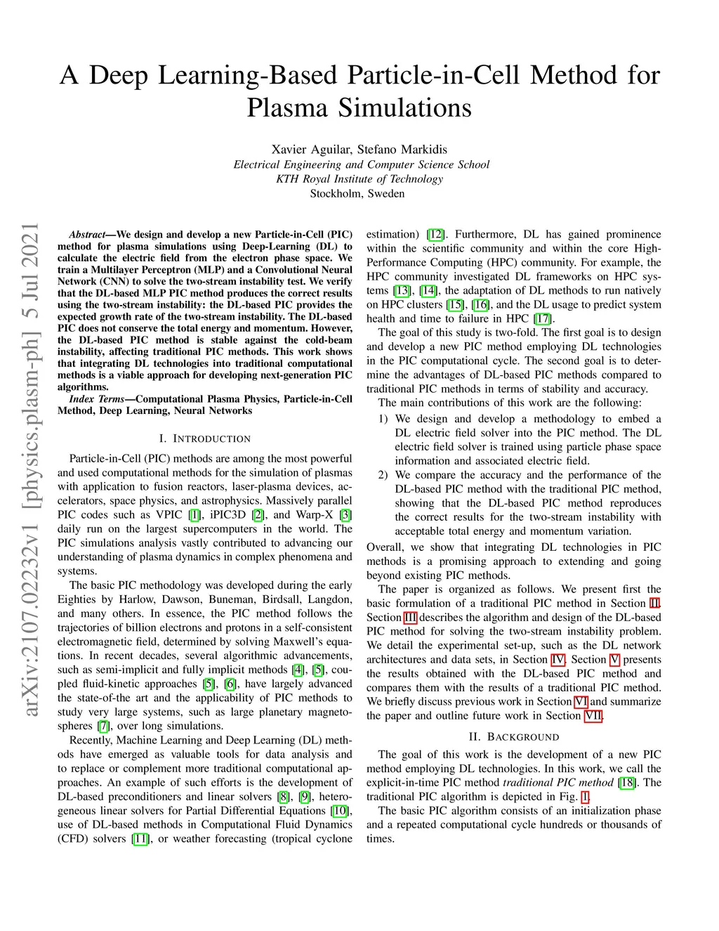 We design and develop a new Particle-in-Cell (PIC) method for plasma simulations using Deep-Learning (DL) to calculate the electric field from the electron phase space. We train a Multilayer Perceptron (MLP) and a Convolutional Neural Network (CNN) to solve the two-stream instability test. We verify that the DL-based MLP PIC method produces the correct results using the two-stream instability: the DL-based PIC provides the expected growth rate of the two-stream instability. The DL-based PIC does not conserve the total energy and momentum. However, the DL-based PIC method is stable against the cold-beam instability, affecting traditional PIC methods. This work shows that integrating DL technologies into traditional computational methods is a viable approach for developing next-generation PIC algorithms.
