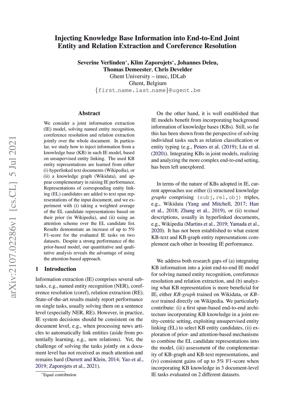 Relation Extraction and Coreference Resolution