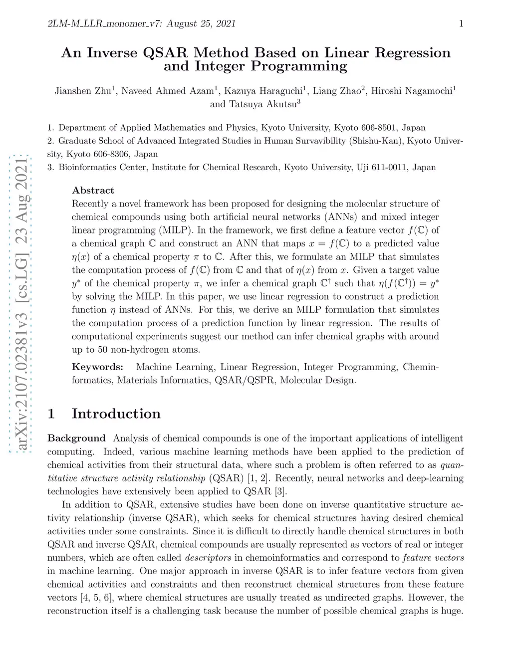 An Inverse QSAR Method Based on Linear Regression and Integer