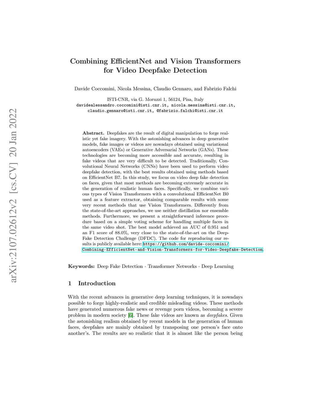 Combining EfficientNet and Vision Transformers for Video Deepfake