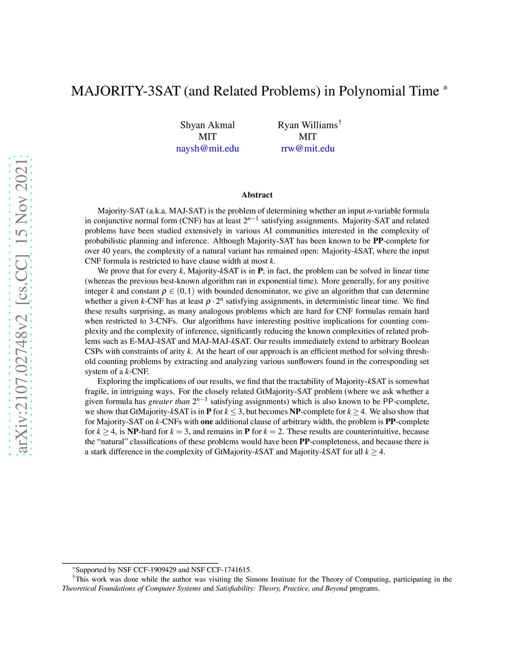 MAJORITY-3SAT (and Related Problems) in Polynomial Time