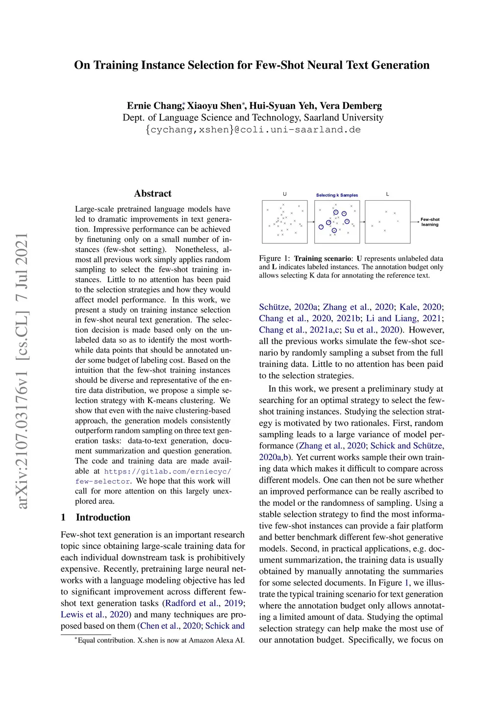 On Training Instance Selection for Few-Shot Neural Text Generation
