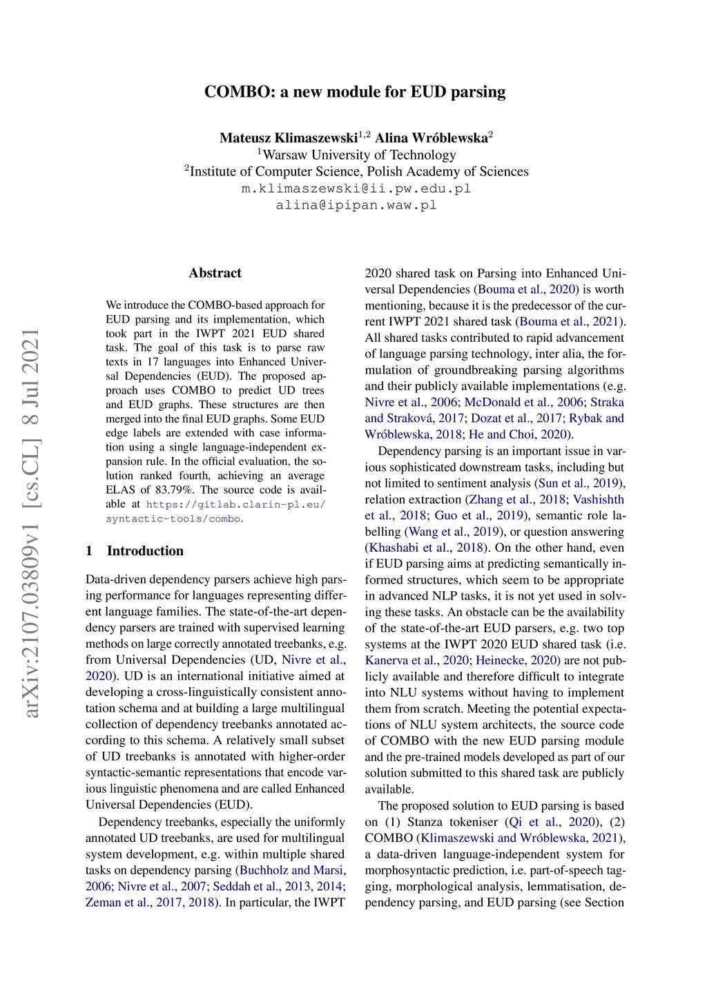 International Workshop/Conference on Parsing Technologies (IWPT), 2021