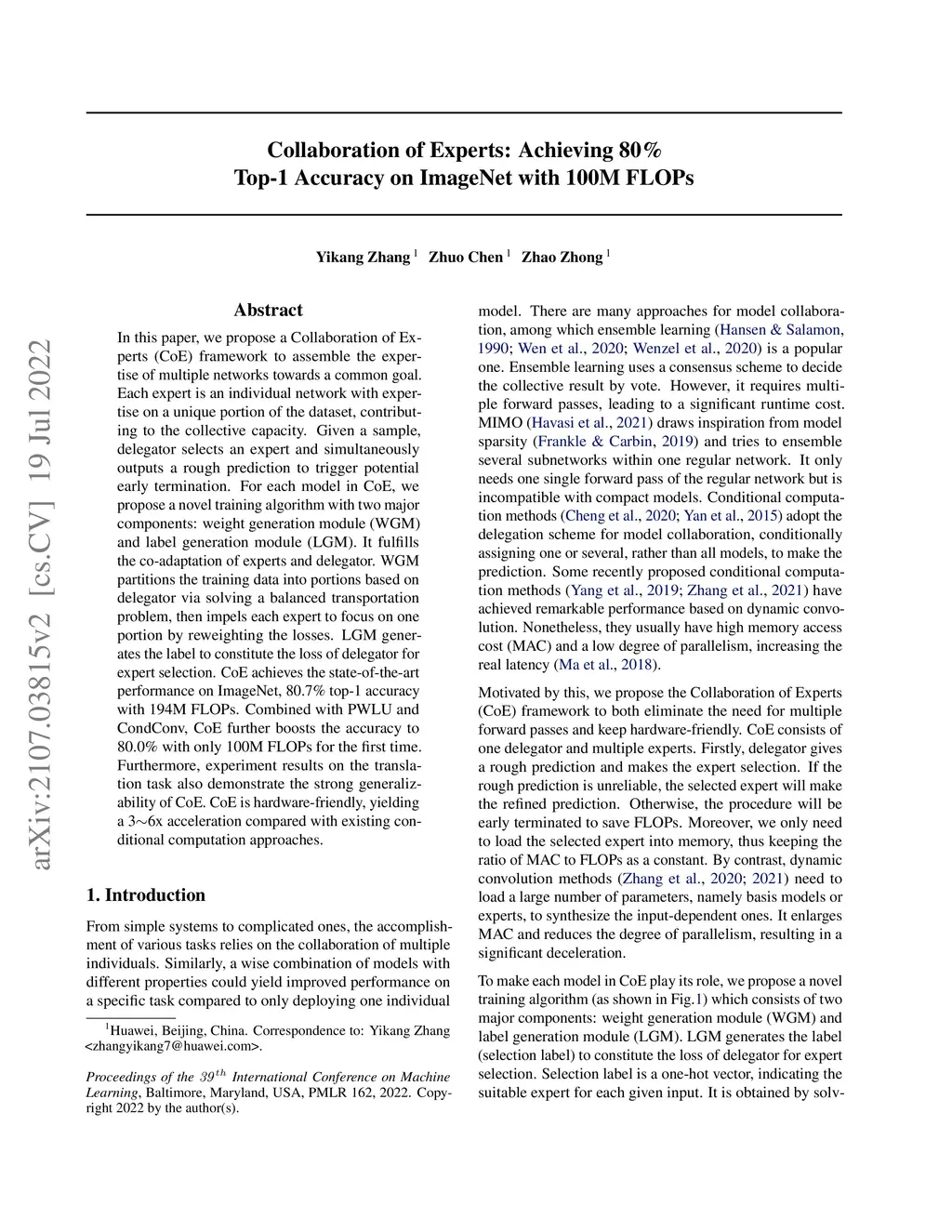 Collaboration of Experts: Achieving 80% Top-1 Accuracy on ImageNet with