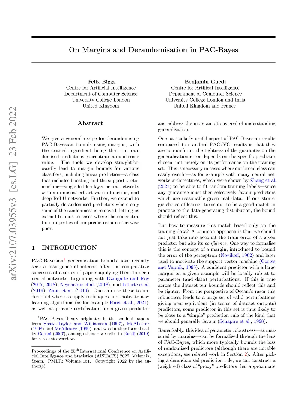 On Margins and Derandomisation in PAC-Bayes
