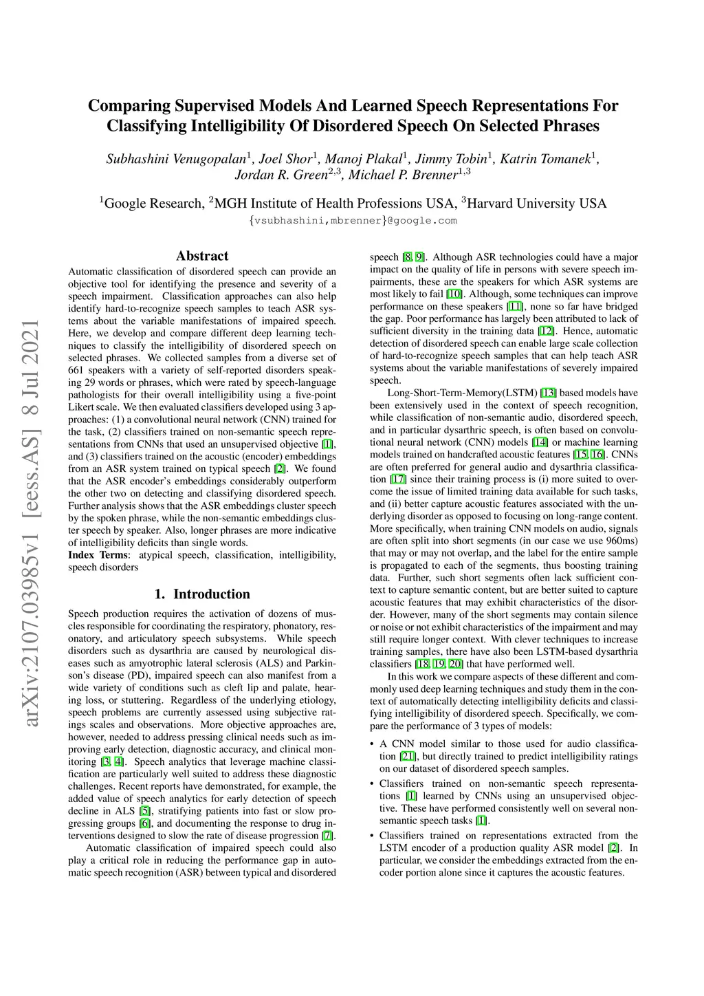 Classifying Intelligibility Of Disordered Speech On Selected Phrases