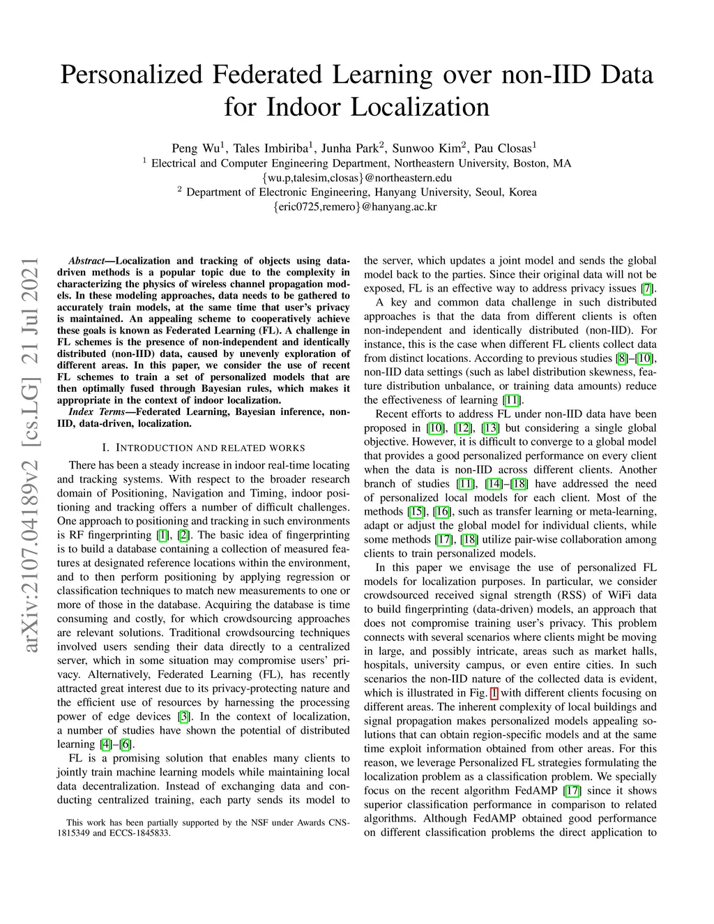 Localization and tracking of objects using data-driven methods is a popular topic due to the complexity in characterizing the physics of wireless channel propagation models. In these modeling approaches, data needs to be gathered to accurately train models, at the same time that user's privacy is maintained. An appealing scheme to cooperatively achieve these goals is known as Federated Learning (FL). A challenge in FL schemes is the presence of non-independent and identically distributed (non-IID) data, caused by unevenly exploration of different areas. In this paper, we consider the use of recent FL schemes to train a set of personalized models that are then optimally fused through Bayesian rules, which makes it appropriate in the context of indoor localization.