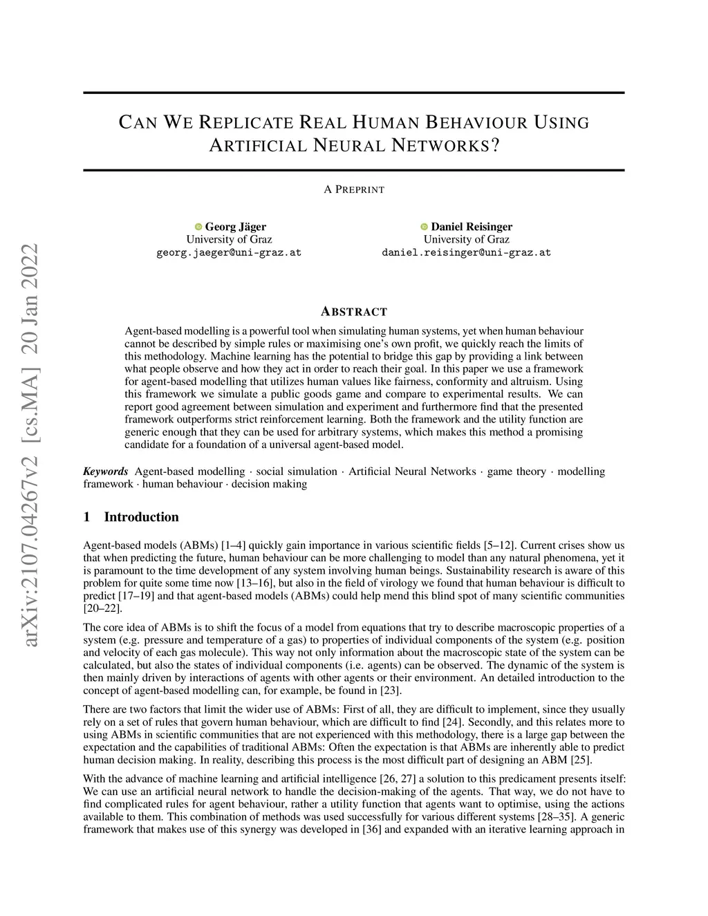 Can We Replicate Real Human Behaviour Using Artificial Neural Networks?