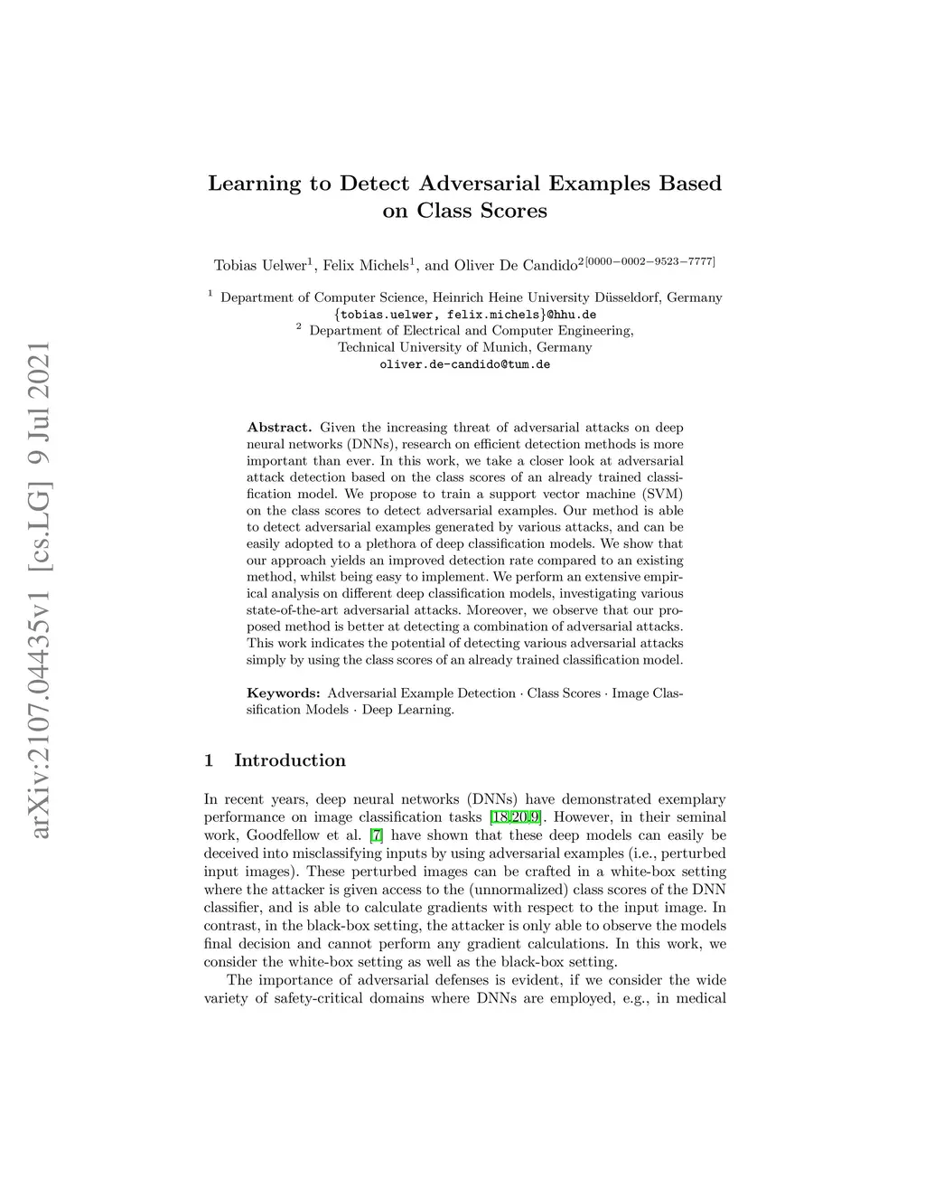Learning to Detect Adversarial Examples Based on Class Scores