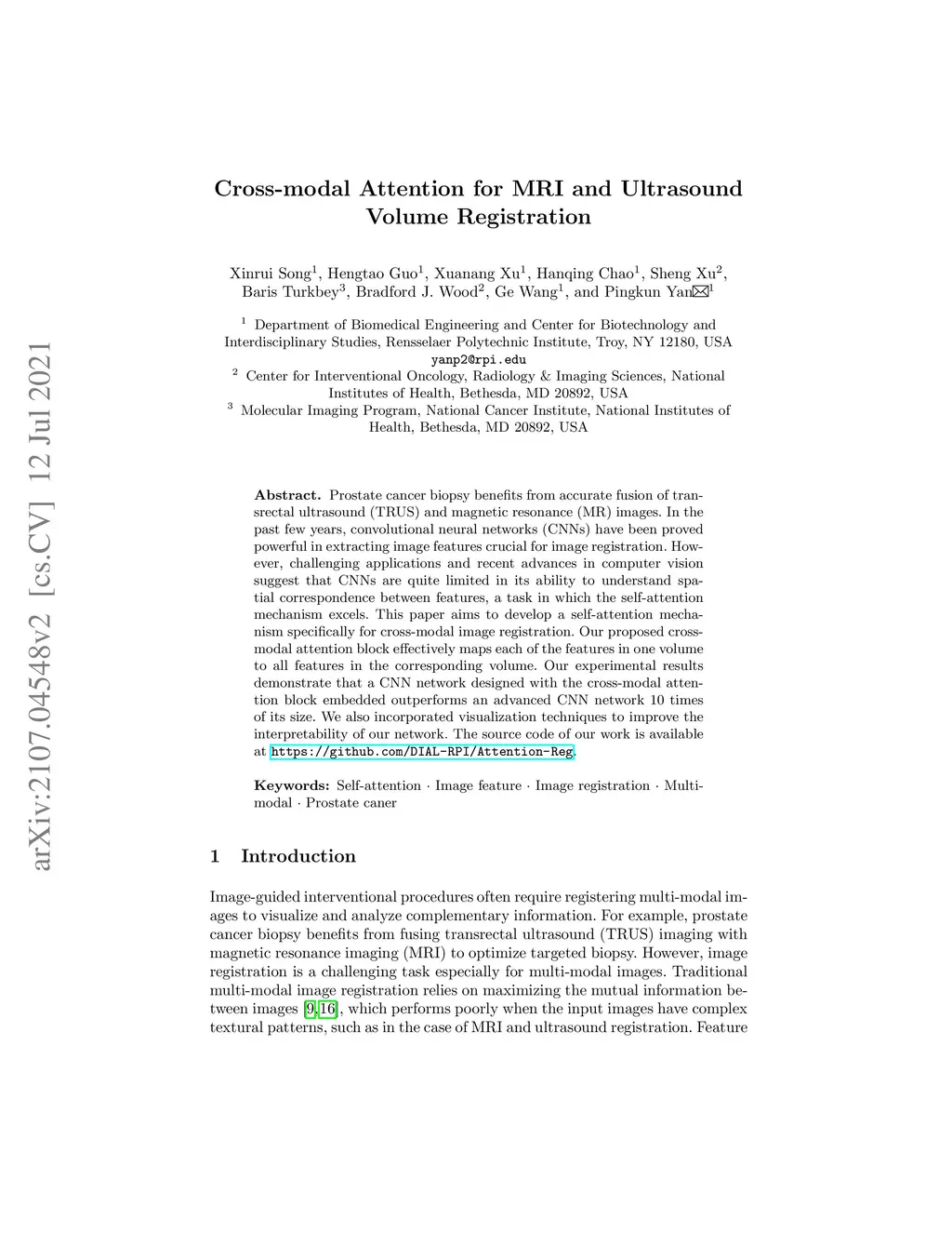 Cross-modal Attention for MRI and Ultrasound Volume Registration