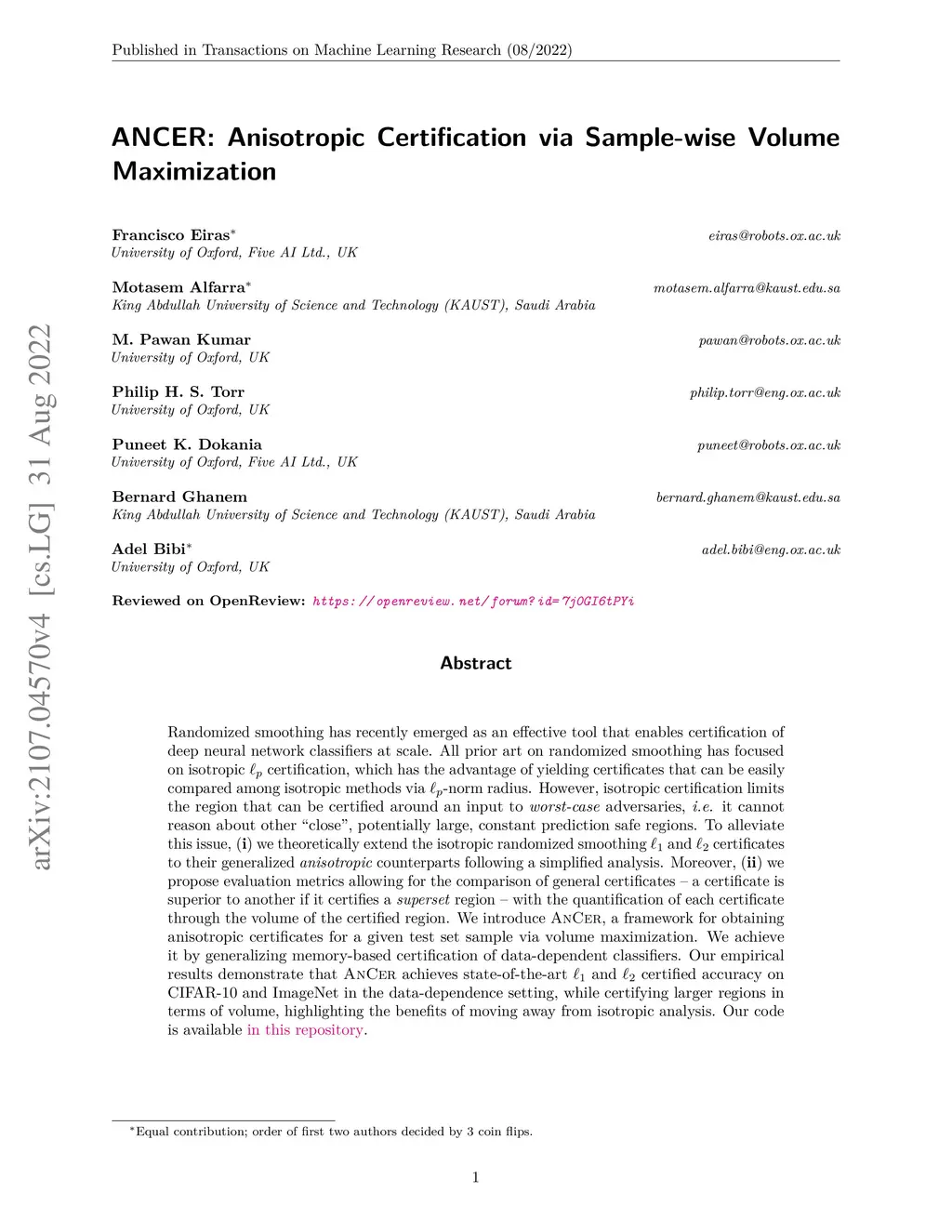 ANCER: Anisotropic Certification via Sample-wise Volume Maximization