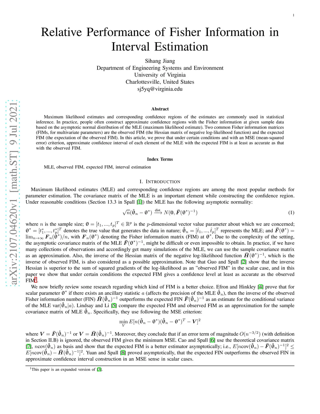 Maximum likelihood estimates and corresponding confidence regions of the estimates are commonly used in statistical inference. In practice, people often construct approximate confidence regions with the Fisher information at given sample data based on the asymptotic normal distribution of the MLE (maximum likelihood estimate). Two common Fisher information matrices (FIMs, for multivariate parameters) are the observed FIM (the Hessian matrix of negative log-likelihood function) and the expected FIM (the expectation of the observed FIM). In this article, we prove that under certain conditions and with an MSE (mean-squared error) criterion, approximate confidence interval of each element of the MLE with the expected FIM is at least as accurate as that with the observed FIM.