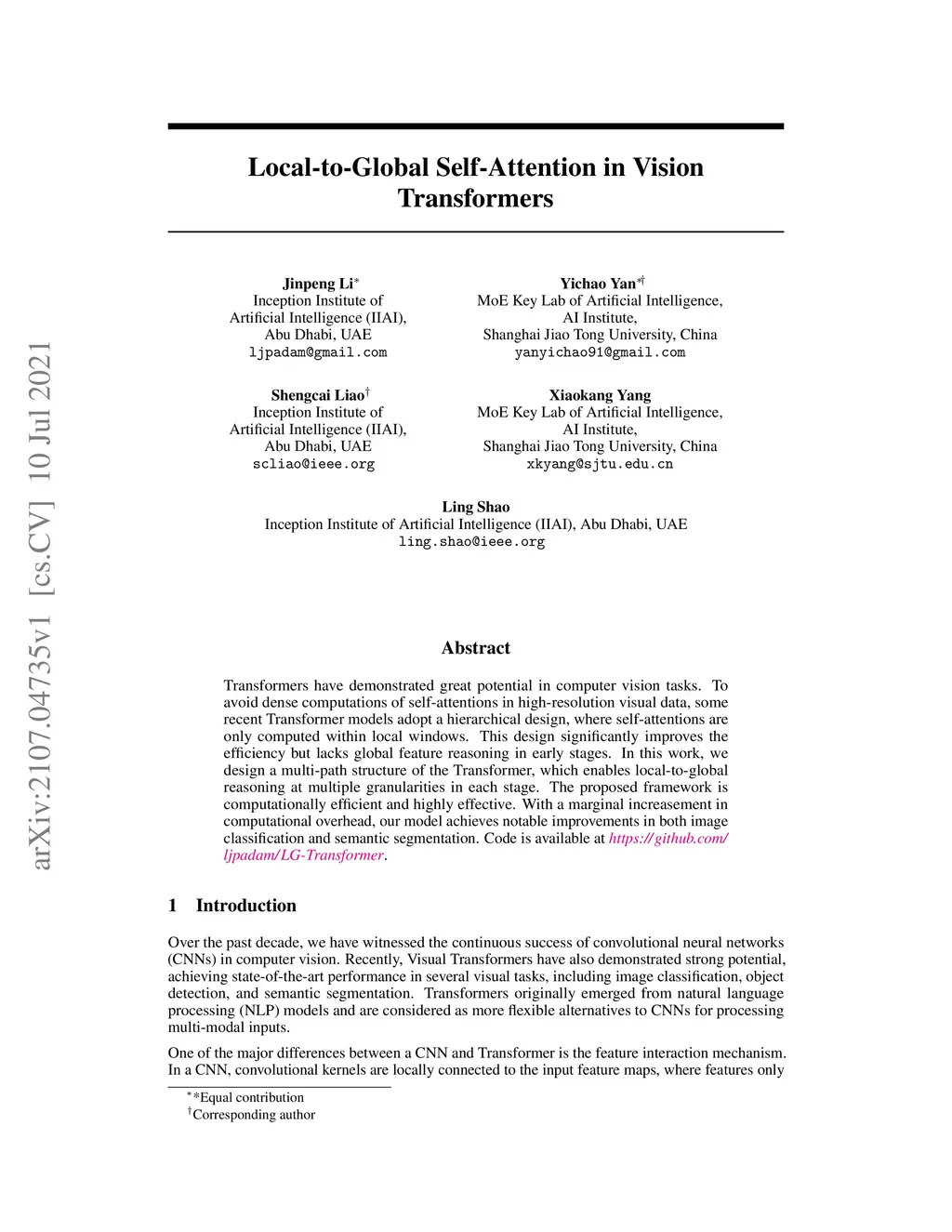 Local-to-Global Self-Attention in Vision Transformers