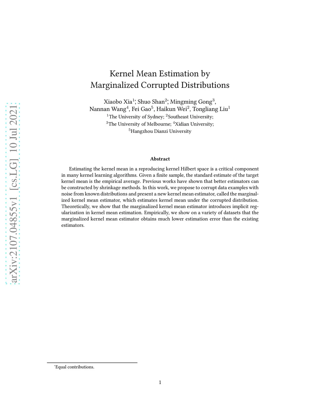 Kernel Mean Estimation by Marginalized Corrupted Distributions
