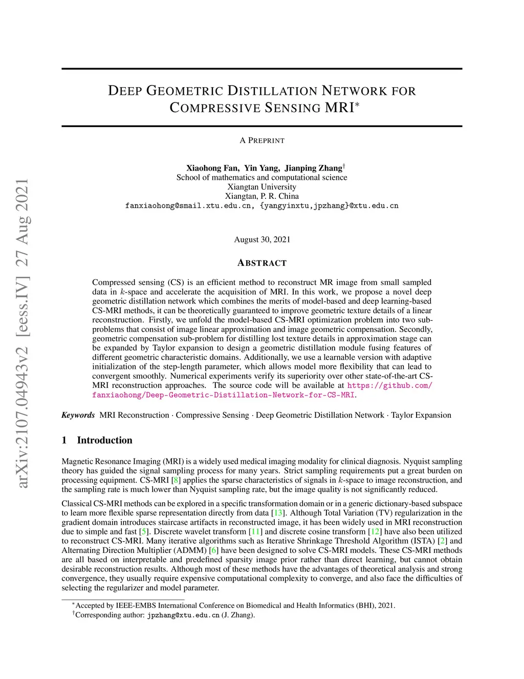 Deep Geometric Distillation Network for Compressive Sensing MRI