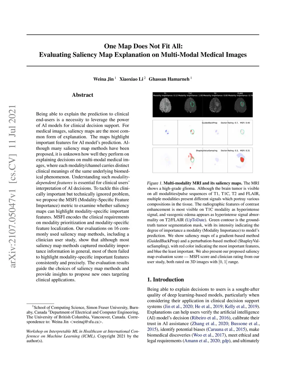 Being able to explain the prediction to clinical end-users is a necessity to leverage the power of AI models for clinical decision support. For medical images, saliency maps are the most common form of explanation. The maps highlight important features for AI model's prediction. Although many saliency map methods have been proposed, it is unknown how well they perform on explaining decisions on multi-modal medical images, where each modality/channel carries distinct clinical meanings of the same underlying biomedical phenomenon. Understanding such modality-dependent features is essential for clinical users' interpretation of AI decisions. To tackle this clinically important but technically ignored problem, we propose the MSFI (Modality-Specific Feature Importance) metric to examine whether saliency maps can highlight modality-specific important features. MSFI encodes the clinical requirements on modality prioritization and modality-specific feature localization. Our evaluations on 16 commonly used saliency map methods, including a clinician user study, show that although most saliency map methods captured modality importance information in general, most of them failed to highlight modality-specific important features consistently and precisely. The evaluation results guide the choices of saliency map methods and provide insights to propose new ones targeting clinical applications.