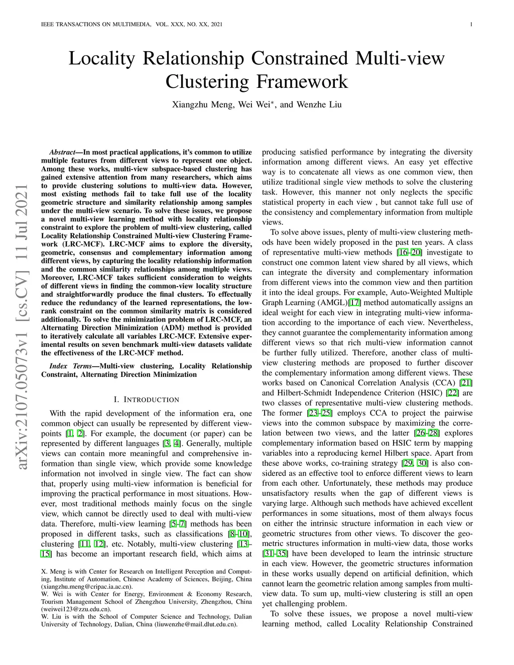 Locality Relationship Constrained Multi-view Clustering Framework
