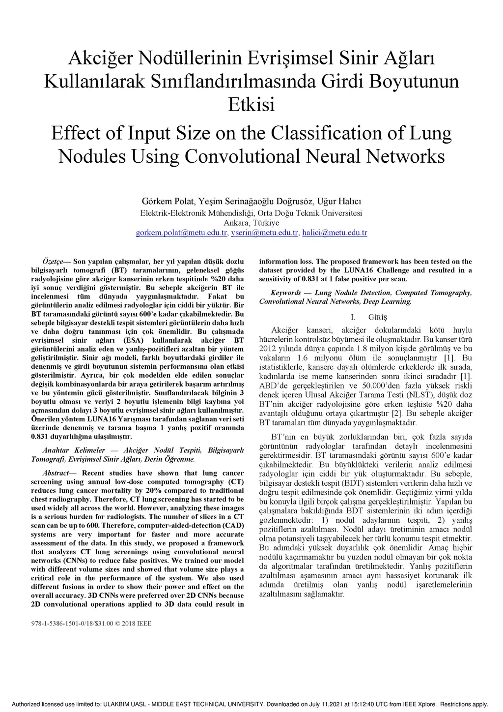Effect of Input Size on the Classification of Lung Nodules Using