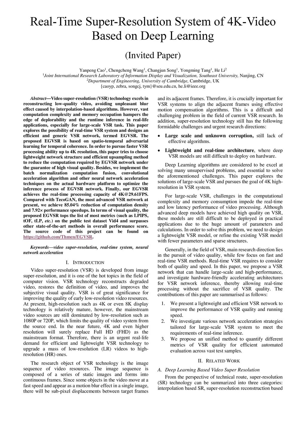 Real-Time Super-Resolution System of 4K-Video Based on Deep Learning