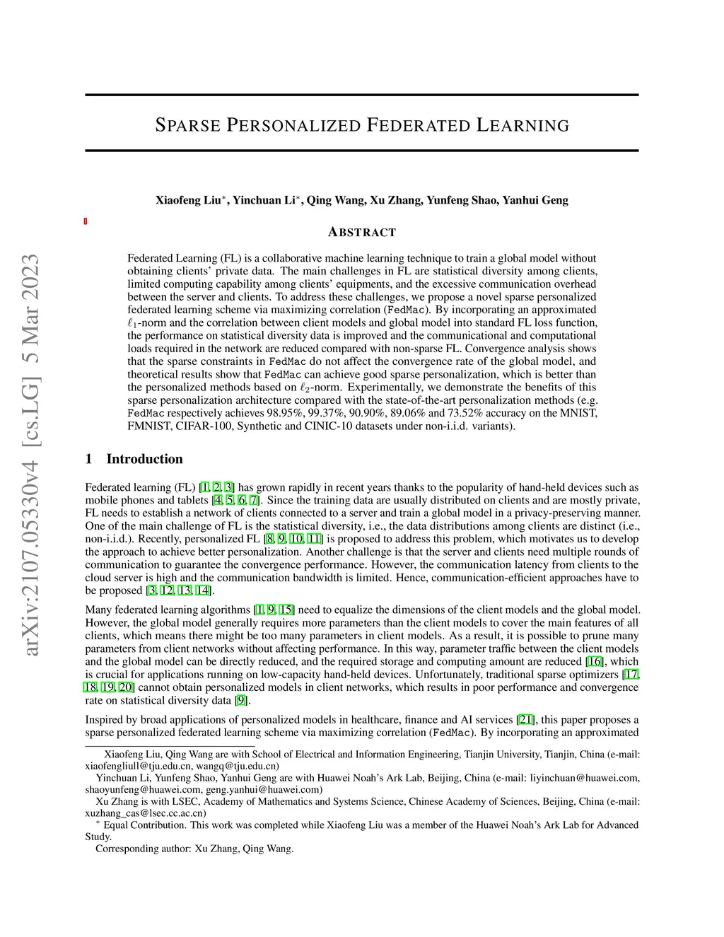 Sparse Personalized Federated Learning