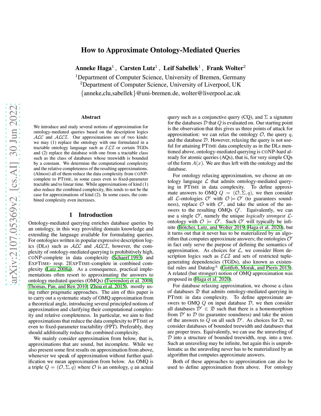 We introduce and study several notions of approximation for ontology-mediated queries based on the description logics ALC and ALCI. Our approximations are of two kinds: we may (1) replace the ontology with one formulated in a tractable ontology language such as ELI or certain TGDs and (2) replace the database with one from a tractable class such as the class of databases whose treewidth is bounded by a constant. We determine the computational complexity and the relative completeness of the resulting approximations. (Almost) all of them reduce the data complexity from coNP-complete to PTime, in some cases even to fixed-parameter tractable and to linear time. While approximations of kind (1) also reduce the combined complexity, this tends to not be the case for approximations of kind (2). In some cases, the combined complexity even increases.