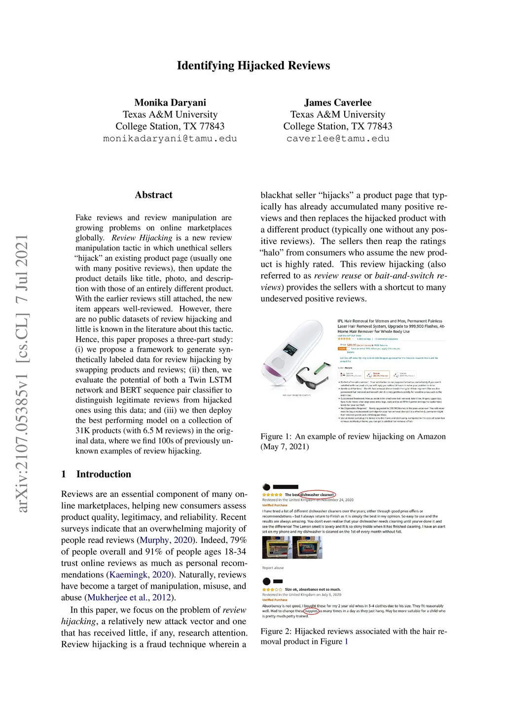 Identifying Hijacked Reviews