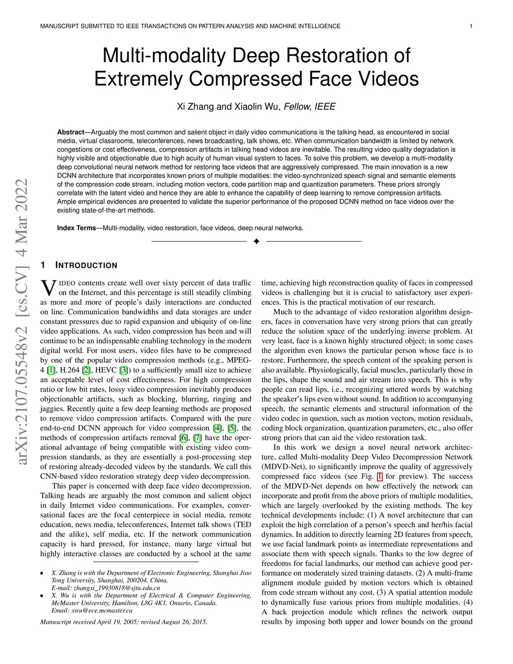 Multi-modality Deep Restoration of Extremely Compressed Face Videos