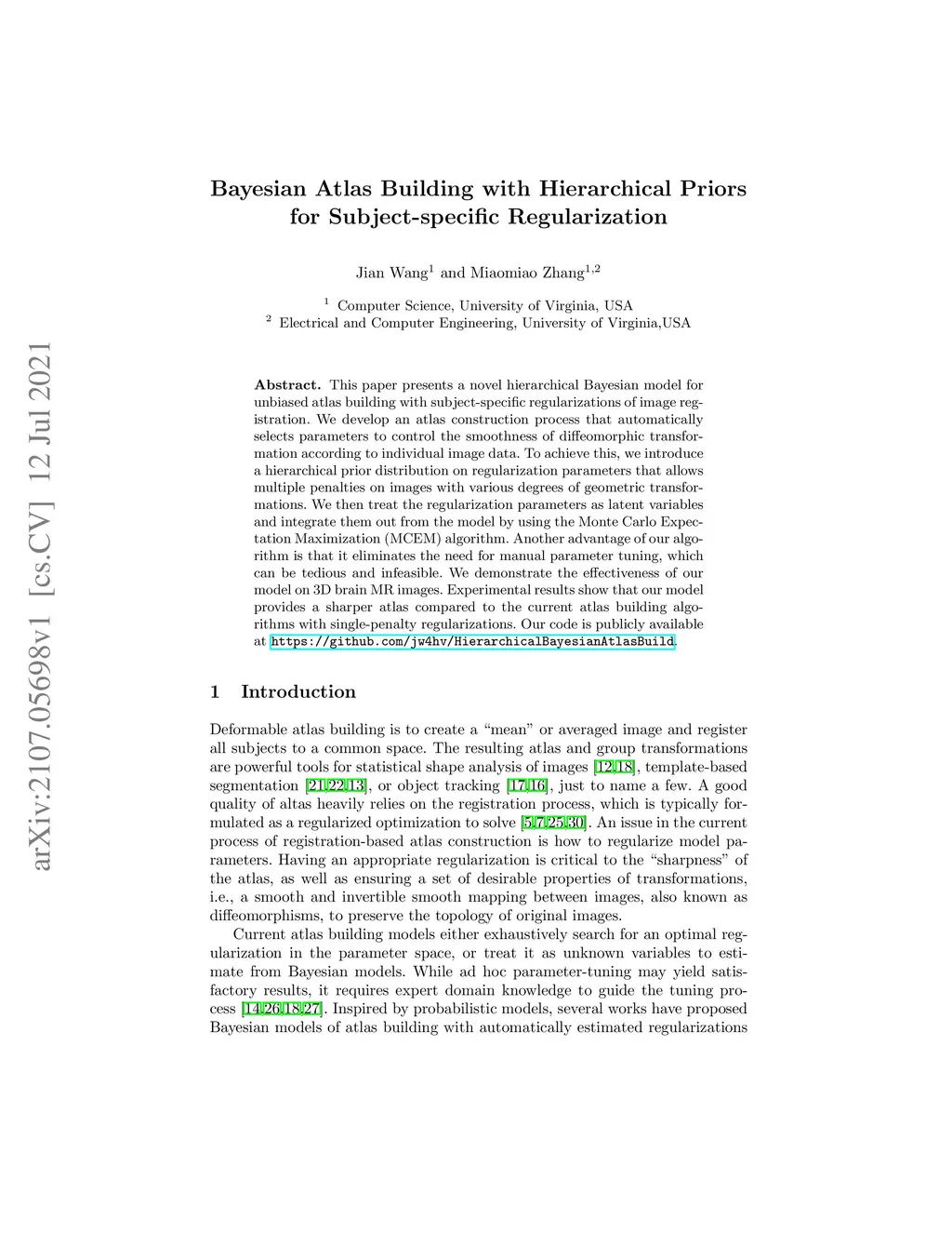 Bayesian Atlas Building with Hierarchical Priors for Subject-specific