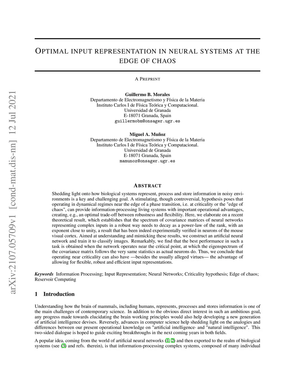 Shedding light onto how biological systems represent, process and store information in noisy environments is a key and challenging goal. A stimulating, though controversial, hypothesis poses that operating in dynamical regimes near the edge of a phase transition, i.e. at criticality or the "edge of chaos", can provide information-processing living systems with important operational advantages, creating, e.g., an optimal trade-off between robustness and flexibility. Here, we elaborate on a recent theoretical result, which establishes that the spectrum of covariance matrices of neural networks representing complex inputs in a robust way needs to decay as a power-law of the rank, with an exponent close to unity, a result that has been indeed experimentally verified in neurons of the mouse visual cortex. Aimed at understanding and mimicking these results, we construct an artificial neural network and train it to classify images. Remarkably, we find that the best performance in such a task is obtained when the network operates near the critical point, at which the eigenspectrum of the covariance matrix follows the very same statistics as actual neurons do. Thus, we conclude that operating near criticality can also have -- besides the usually alleged virtues -- the advantage of allowing for flexible, robust and efficient input representations.