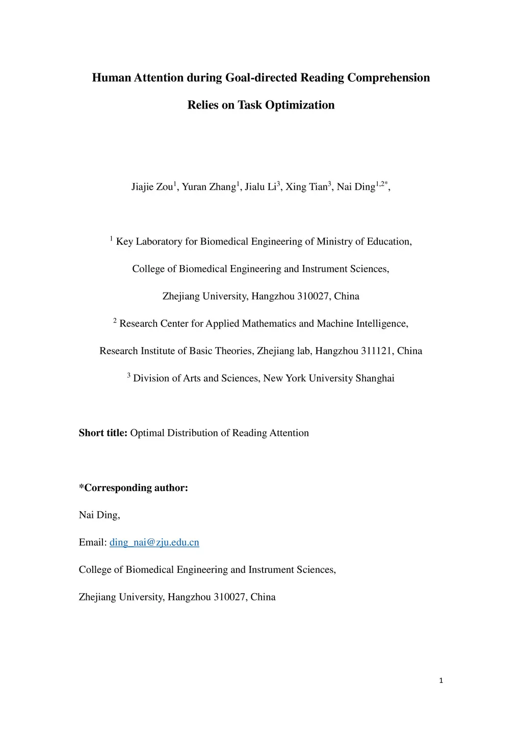 Human Attention during Goal-directed Reading Comprehension Relies on