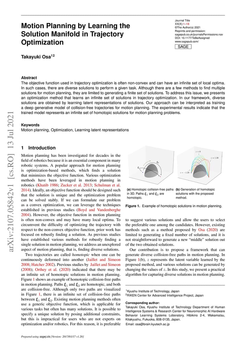 Motion Planning by Learning the Solution Manifold in Trajectory