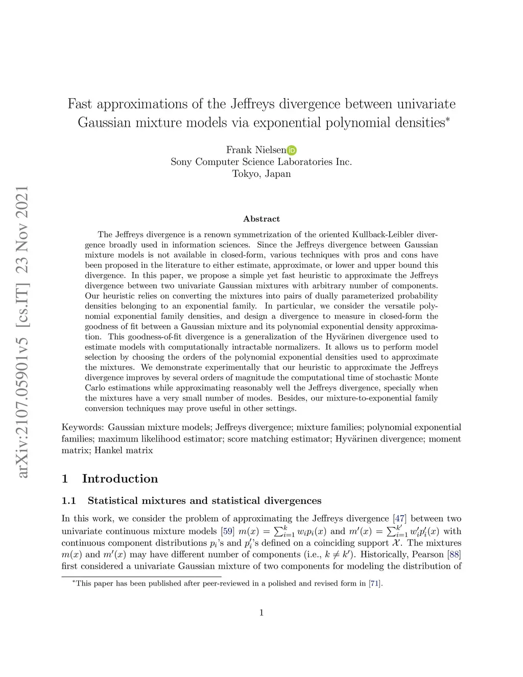 Gaussian mixture models via exponential polynomial densities