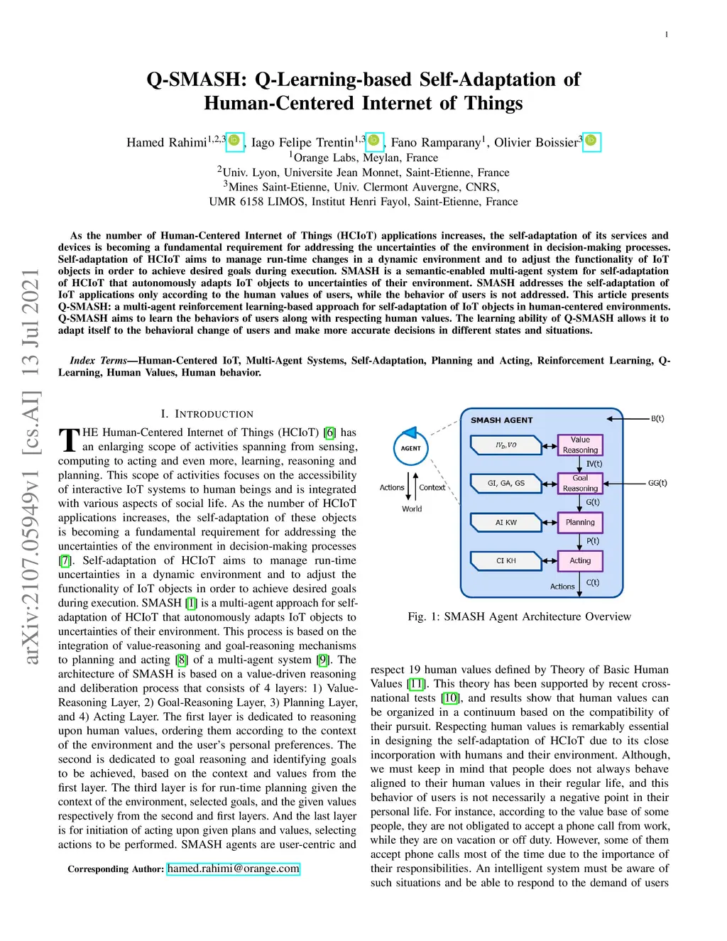 Q-SMASH: Q-Learning-based Self-Adaptation of Human-Centered Internet of