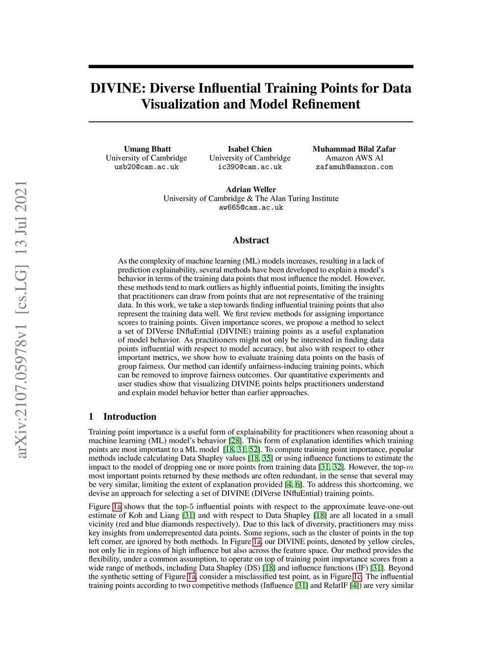 DIVINE: Diverse Influential Training Points for Data Visualization and