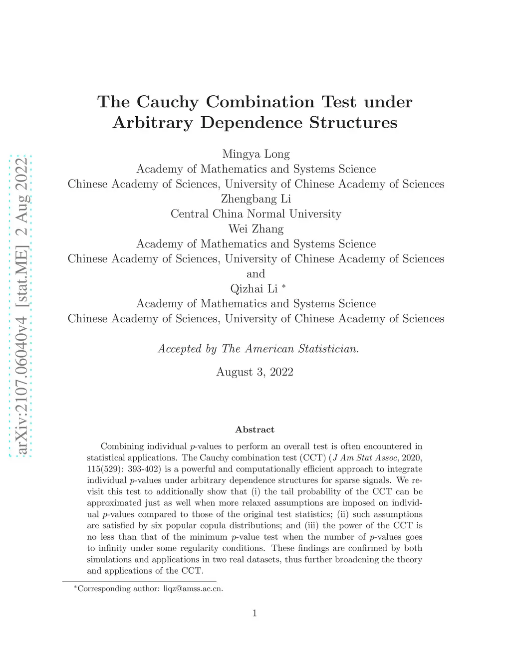 Aggregating multiple effects is often encountered in large-scale data analysis where the fraction of significant effects is generally small. Many existing methods cannot handle it effectively because of lack of computational accuracy for small p-values. The Cauchy combination test (abbreviated as CCT) ( J Am Statist Assoc, 2020, 115(529):393-402) is a powerful and computational effective test to aggregate individual -values under arbitrary correlation structures. This work revisits CCT and shows three key contributions including that (i) the tail probability of CCT can be well approximated by a standard Cauchy distribution under much more relaxed conditions placed on individual p-values instead of the original test statistics; (ii) the relaxation conditions are shown to be satisfied for many popular copulas formulating bivariate distributions; (iii) the power of CCT is no less than that of the minimum-type test as the number of tests goes to infinity with some regular conditions. These results further broaden the theories and applications of CCT. The simulation results verify the theoretic results and the performance of CCT is further evaluated with data from a prostate cancer study.