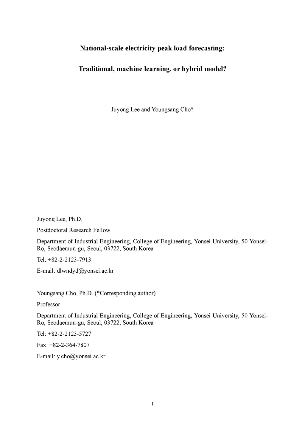 As the volatility of electricity demand increases owing to climate change and electrification, the importance of accurate peak load forecasting is increasing. Traditional peak load forecasting has been conducted through time series-based models; however, recently, new models based on machine or deep learning are being introduced. This study performs a comparative analysis to determine the most accurate peak load-forecasting model for Korea, by comparing the performance of time series, machine learning, and hybrid models. Seasonal autoregressive integrated moving average with exogenous variables (SARIMAX) is used for the time series model. Artificial neural network (ANN), support vector regression (SVR), and long short-term memory (LSTM) are used for the machine learning models. SARIMAX-ANN, SARIMAX-SVR, and SARIMAX-LSTM are used for the hybrid models. The results indicate that the hybrid models exhibit significant improvement over the SARIMAX model. The LSTM-based models outperformed the others; the single and hybrid LSTM models did not exhibit a significant performance difference. In the case of Korea's highest peak load in 2019, the predictive power of the LSTM model proved to be greater than that of the SARIMAX-LSTM model. The LSTM, SARIMAX-SVR, and SARIMAX-LSTM models outperformed the current time series-based forecasting model used in Korea. Thus, Korea's peak load-forecasting performance can be improved by including machine learning or hybrid models.