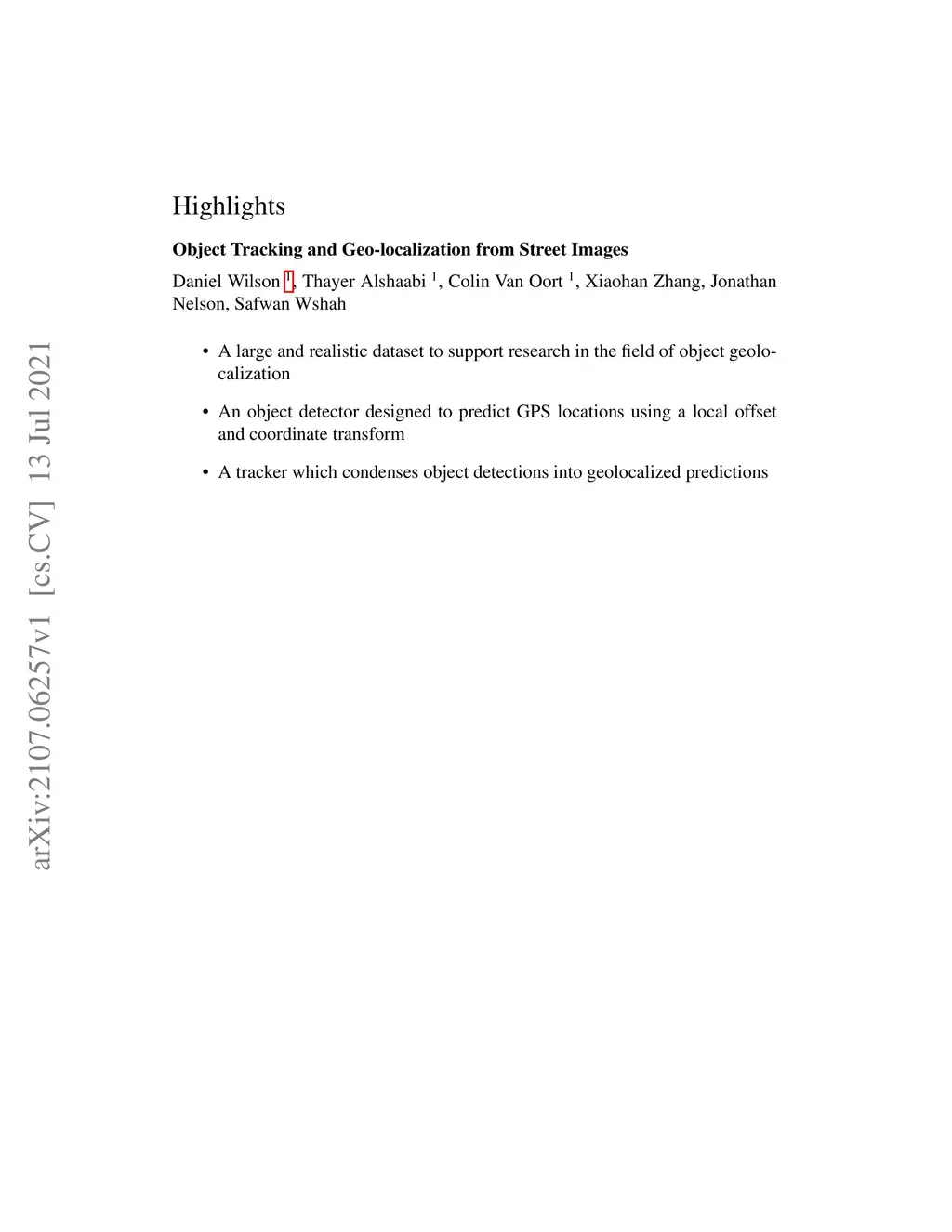 Geo-localizing static objects from street images is challenging but also very important for road asset mapping and autonomous driving. In this paper we present a two-stage framework that detects and geolocalizes traffic signs from low frame rate street videos. Our proposed system uses a modified version of RetinaNet (GPS-RetinaNet), which predicts a positional offset for each sign relative to the camera, in addition to performing the standard classification and bounding box regression. Candidate sign detections from GPS-RetinaNet are condensed into geolocalized signs by our custom tracker, which consists of a learned metric network and a variant of the Hungarian Algorithm. Our metric network estimates the similarity between pairs of detections, then the Hungarian Algorithm matches detections across images using the similarity scores provided by the metric network. Our models were trained using an updated version of the ARTS dataset, which contains 25,544 images and 47.589 sign annotations ~\cite{arts}. The proposed dataset covers a diverse set of environments gathered from a broad selection of roads. Each annotaiton contains a sign class label, its geospatial location, an assembly label, a side of road indicator, and unique identifiers that aid in the evaluation. This dataset will support future progress in the field, and the proposed system demonstrates how to take advantage of some of the unique characteristics of a realistic geolocalization dataset.