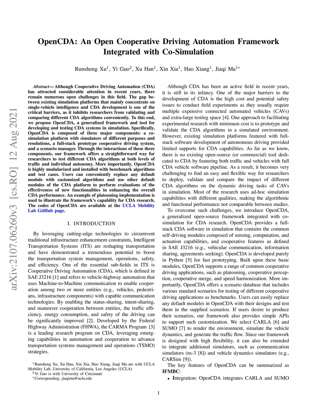 OpenCDA:An Open Cooperative Driving Automation Framework Integrated with