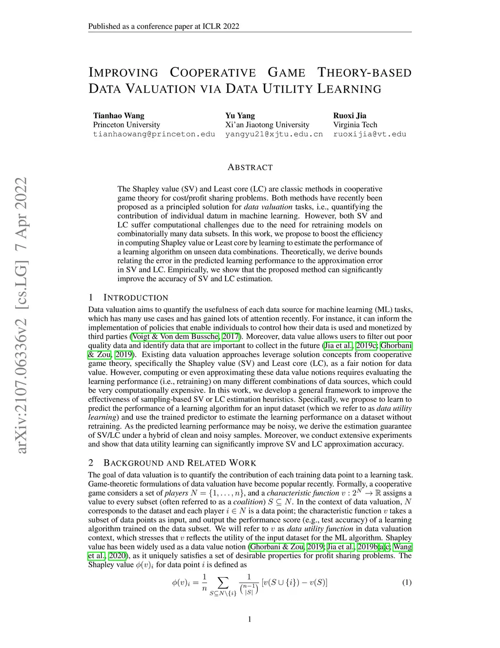 The Shapley value (SV) and Least core (LC) are classic methods in cooperative game theory for cost/profit sharing problems. Both methods have recently been proposed as a principled solution for data valuation tasks, i.e., quantifying the contribution of individual datum in machine learning. However, both SV and LC suffer computational challenges due to the need for retraining models on combinatorially many data subsets. In this work, we propose to boost the efficiency in computing Shapley value or Least core by learning to estimate the performance of a learning algorithm on unseen data combinations. Theoretically, we derive bounds relating the error in the predicted learning performance to the approximation error in SV and LC. Empirically, we show that the proposed method can significantly improve the accuracy of SV and LC estimation.