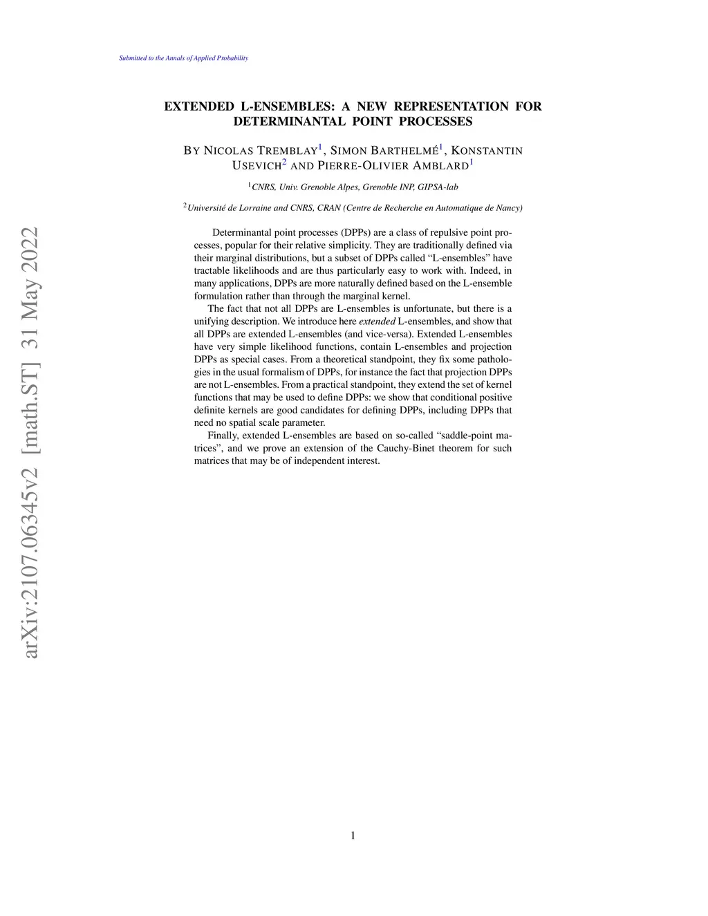 Determinantal point processes (DPPs) are a class of repulsive point processes, popular for their relative simplicity. They are traditionally defined via their marginal distributions, but a subset of DPPs called "L-ensembles" have tractable likelihoods and are thus particularly easy to work with. Indeed, in many applications, DPPs are more naturally defined based on the L-ensemble formulation rather than through the marginal kernel. The fact that not all DPPs are L-ensembles is unfortunate, but there is a unifying description. We introduce here extended L-ensembles, and show that all DPPs are extended L-ensembles (and vice-versa). Extended L-ensembles have very simple likelihood functions, contain L-ensembles and projection DPPs as special cases. From a theoretical standpoint, they fix some pathologies in the usual formalism of DPPs, for instance the fact that projection DPPs are not L-ensembles. From a practical standpoint, they extend the set of kernel functions that may be used to define DPPs: we show that conditional positive definite kernels are good candidates for defining DPPs, including DPPs that need no spatial scale parameter. Finally, extended L-ensembles are based on so-called ``saddle-point matrices'', and we prove an extension of the Cauchy-Binet theorem for such matrices that may be of independent interest.