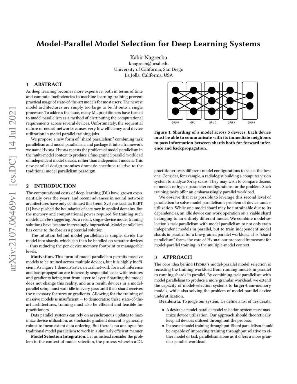 As deep learning becomes more expensive, both in terms of time and compute, inefficiencies in machine learning (ML) training prevent practical usage of state-of-the-art models for most users. The newest model architectures are simply too large to be fit onto a single processor. To address the issue, many ML practitioners have turned to model parallelism as a method of distributing the computational requirements across several devices. Unfortunately, the sequential nature of neural networks causes very low efficiency and device utilization in model parallel training jobs. We propose a new form of "shard parallelism" combining task and model parallelism, then package it into a framework we name Hydra. Hydra recasts the problem of model parallelism in the multi-model context to produce a fine-grained parallel workload of independent model shards, rather than independent models. This new parallel design promises dramatic speedups relative to the traditional model parallelism paradigm.