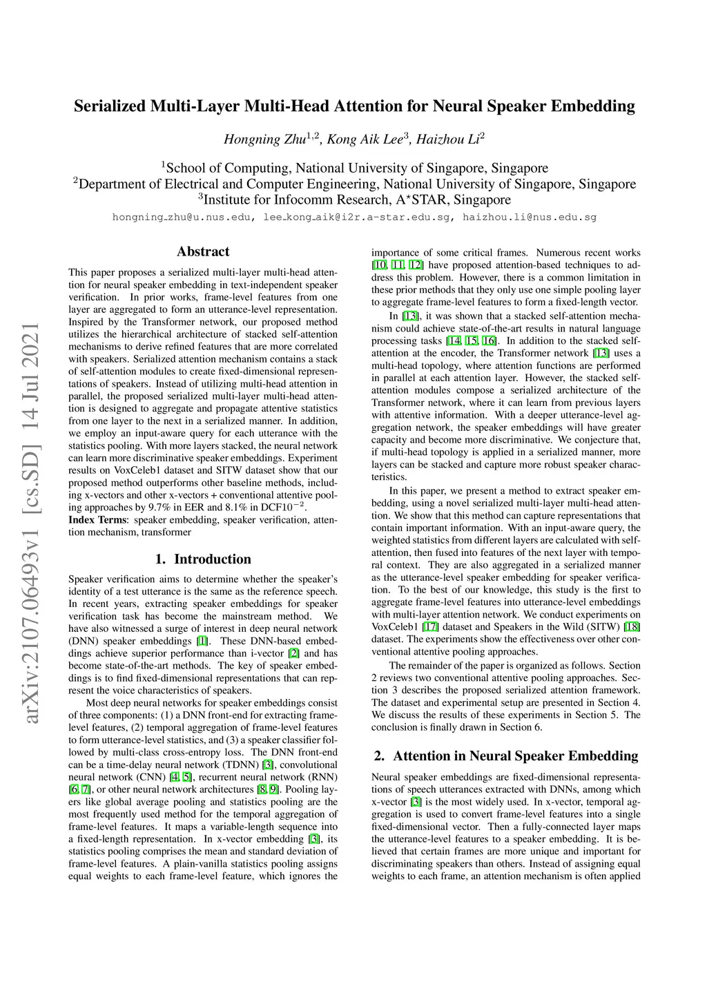 Serialized Multi-Layer Multi-Head Attention for Neural Speaker Embedding