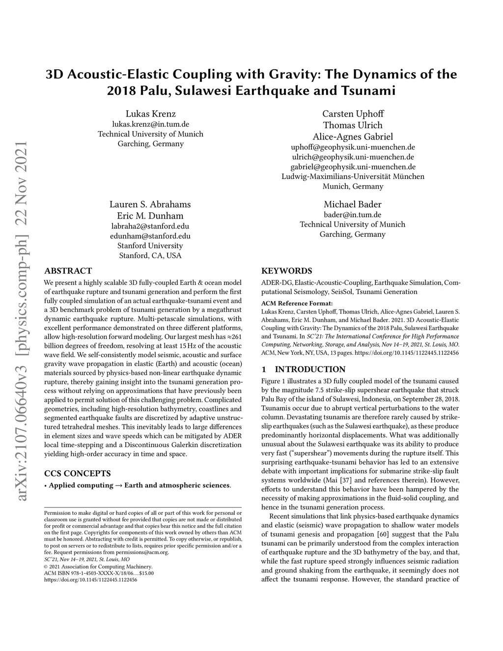 3D Acoustic-Elastic Coupling with Gravity: The Dynamics of the 2018