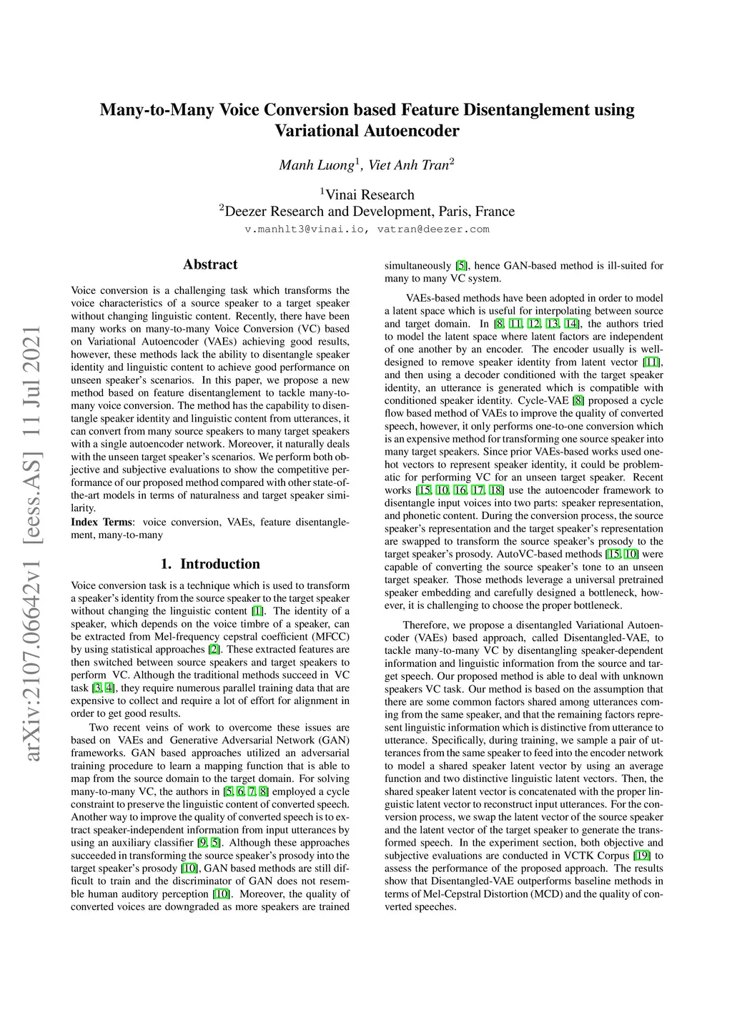 Many-to-Many Voice Conversion based Feature Disentanglement using