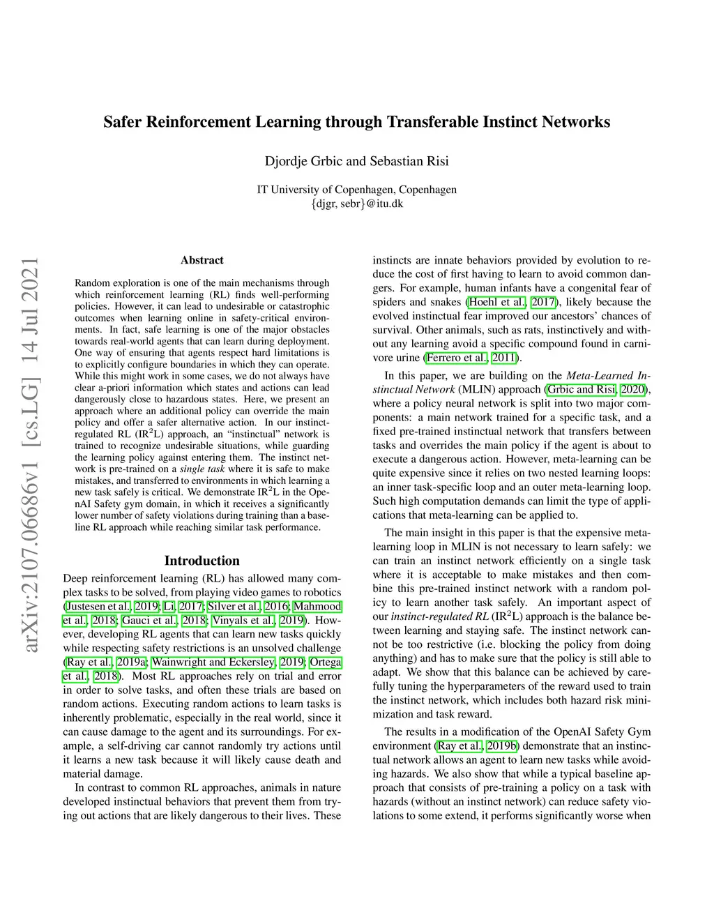 Safer Reinforcement Learning through Transferable Instinct Networks
