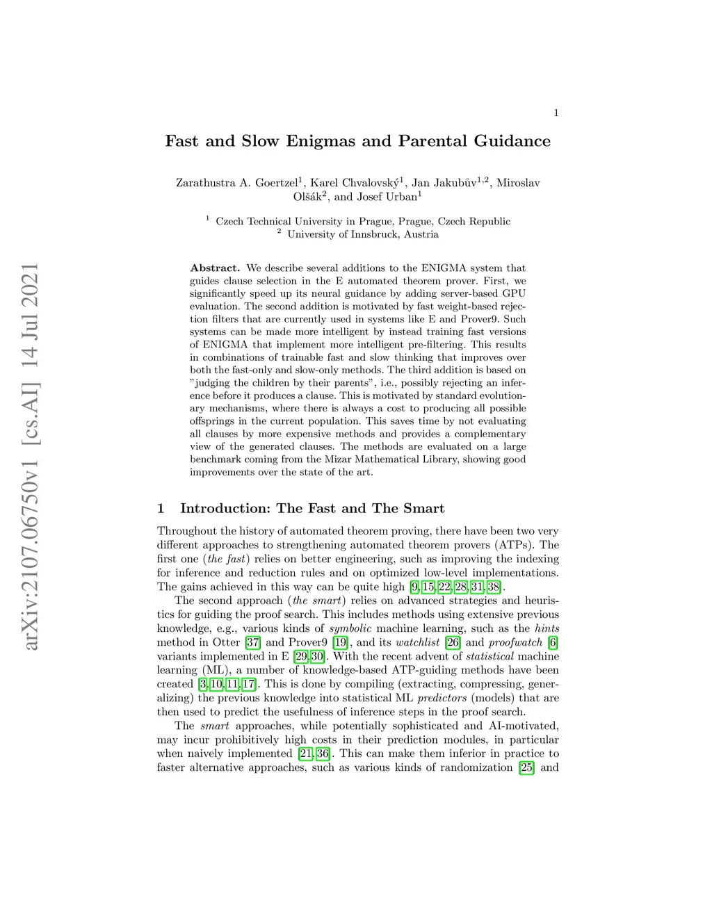 Fast and Slow Enigmas and Parental Guidance