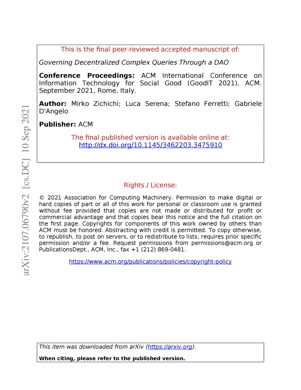 Recently, a new generation of P2P systems capable of addressing data integrity and authenticity has emerged for the development of new applications for a "more" decentralized Internet, i.e., Distributed Ledger Technologies (DLT) and Decentralized File Systems (DFS). However, these technologies still have some unanswered issues, mostly related to data lookup and discovery. In this paper, first, we propose a Distributed Hash Table (DHT) system that efficiently manages decentralized keyword-based queries executed on data stored in DFS. Through a hypercube logical layout, queries are efficiently routed among the network, where each node is responsible for a specific keywords set and the related contents. Second, we provide a framework for the governance of the above network, based on a Decentralized Autonomous Organization (DAO) implementation. We show how the use of smart contracts enables organizational decision making and rewards for nodes that have actively contributed to the DHT. Finally, we provide experimental validation of an implementation of our proposal, where the execution of the same protocol for different logical nodes of the hypercube allows us to evaluate the efficiency of communication within the network.
